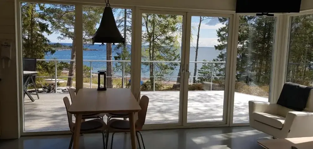 Mega location with a view of the sea, super friendly hosts, absolute calm and relaxation after a week Stockholm just the right thing to recover, small almost private sandy beach can only be reached on foot!